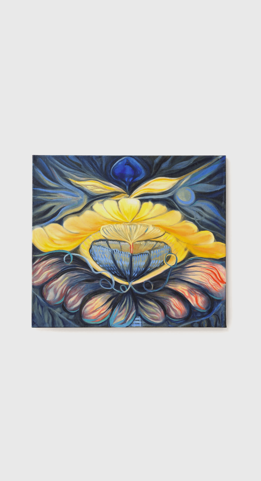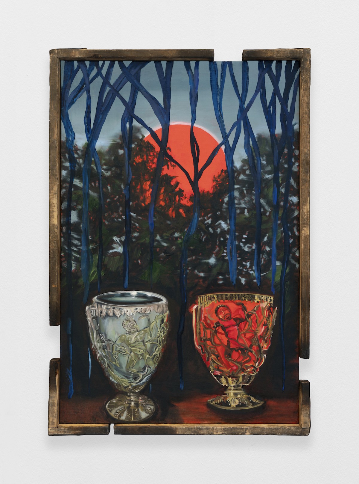 Ukrainian-Canadian artist Ayla Dmyterko’s practice investigates these questions, syncretizing metaphor and figurative imagery to (re)identify objects cross-pollinated between her home province of Saskatchewan and her ancestral lands in Ukraine. Currently based in Glasgow, Scotland, Dmyterko highlights each item’s plurality, disintegrating material hierarchies through the appropriation of found objects and materials—such as wooden shelves and molten beeswax—as frames for her paintings."